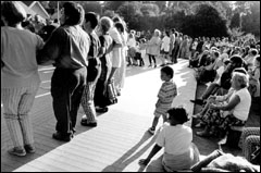 La 1 ère dans-tro terminée, les danseurs demeurent sur place. Dès l'attaque des première note annonçant le bal, le danseur se tourne vers sa cavalière de droite.