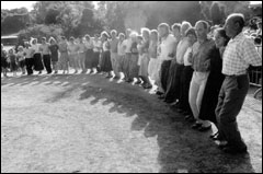 > FORME : C'est partout une ronde tournant vers la gauche, danseurs et danseuses alternés, perpendiculaires à la ligne de danse.